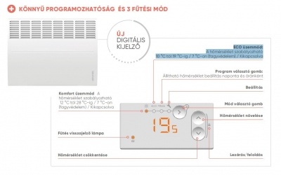 - Akár 25% energia megtakarítás az elektronikus szabályozásnak és a heti programozásnak köszönhetően összehasonlítva más mechanikus termosztáttal szerelt készülékkel.